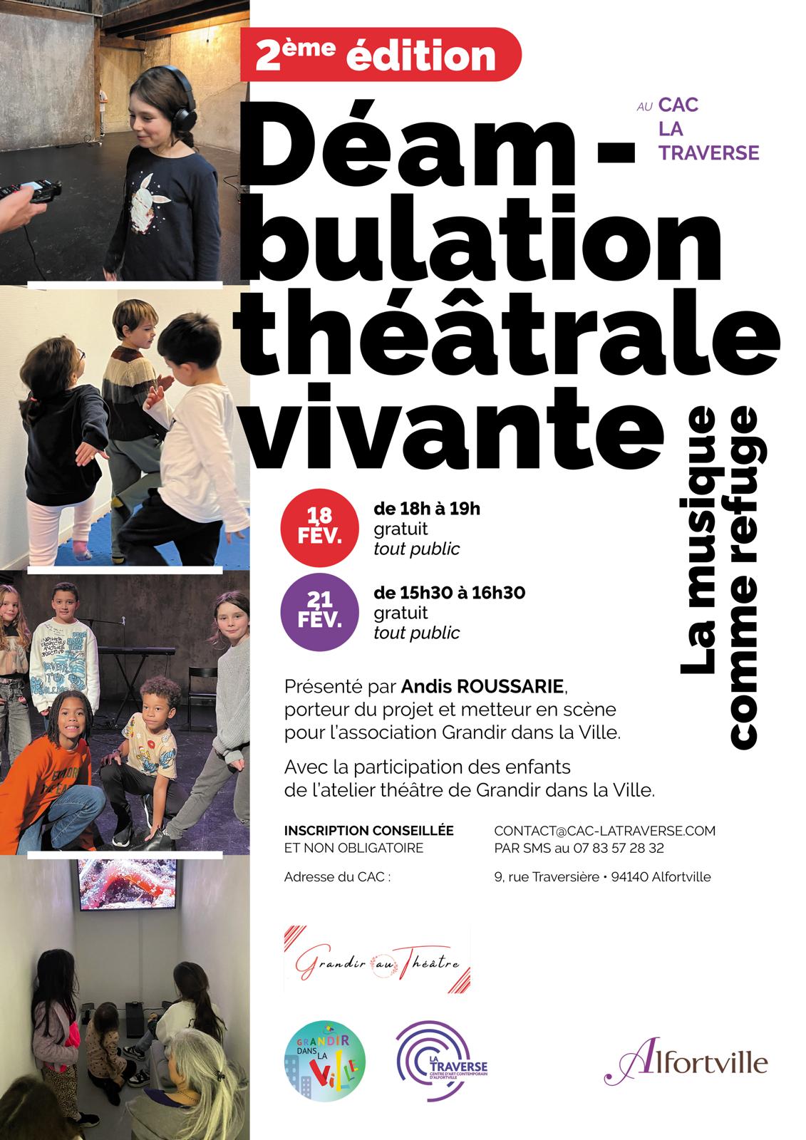 Avec la participation des enfants de l'atelier théâtre de Grandir dans la Ville, la déambulation se construit comme une traversée collective.